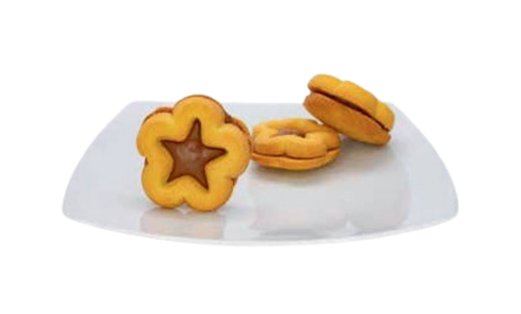 Fiorellini artisanaux italiens en forme de fleurs, garnis d’une crème onctueuse au caramel salé