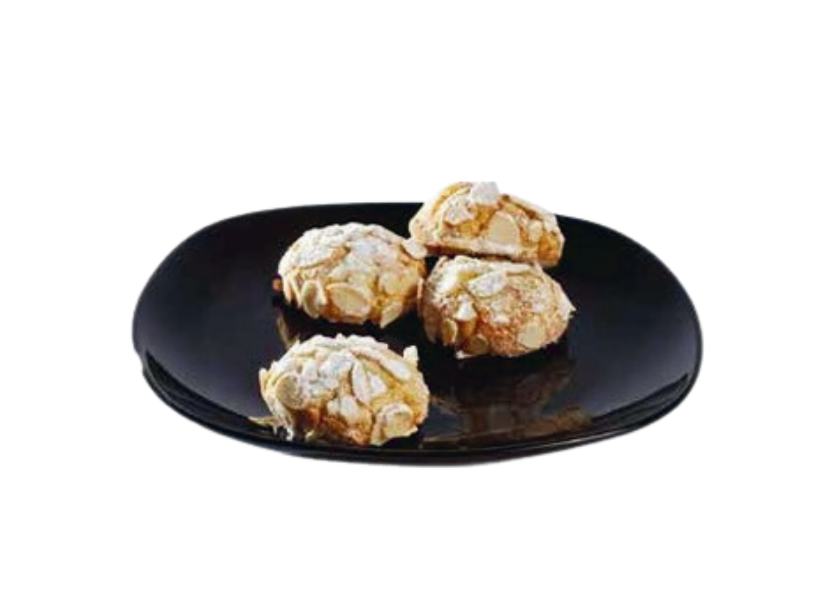 garniture : AMANDES pelées et coupées, sucre glace.